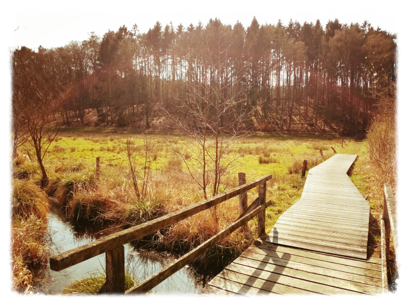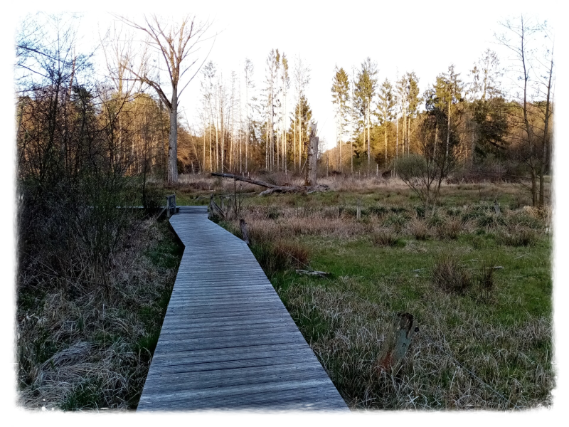 Dieser geschwungene Holzbohlenweg/ Steg quer durch das Hellbachtal gestattet uns gut hinüber zu kommen. Früher war der Weg matschig und schlecht passierbar. AUFPASSEN: bei Nebel /Nieselregen/im Winter aber rutschig! Gutes Schuhwerk zum Wandern, sonst hast du machmal Wasser in Schuhen.
